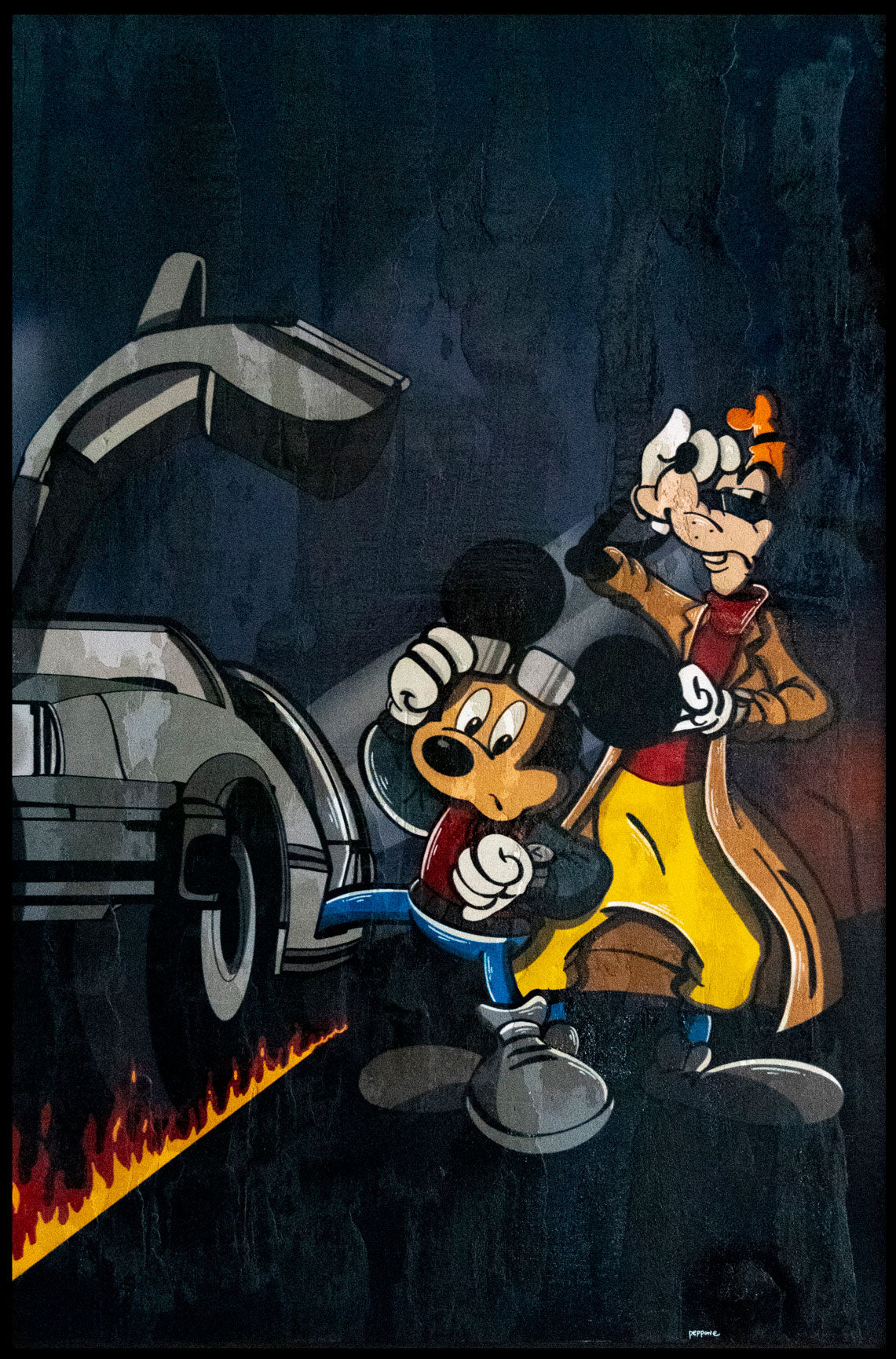 Cemented plaster on canvas mounted on dibond, ink, spray painting and paint marker | Framed in recycled wood American box.