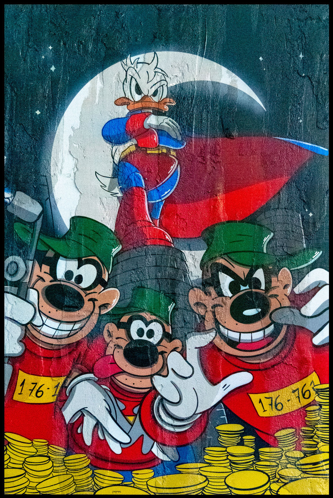 Cemented plaster on canvas mounted on dibond, ink, spray painting and paint marker | Framed in recycled wood American box.