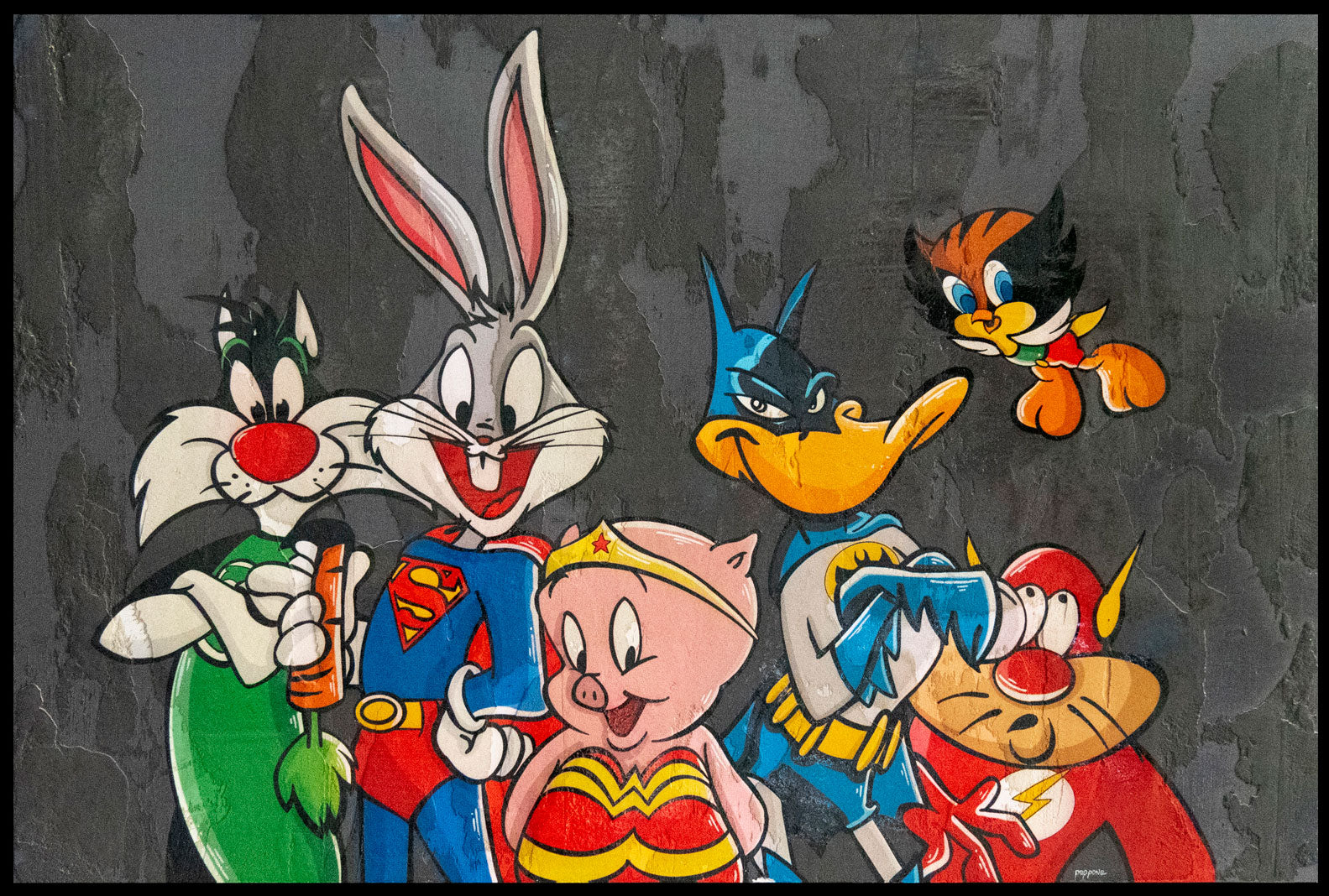 Cemented plaster on canvas mounted on dibond, ink, spray painting and paint marker | Framed in recycled wood American box.