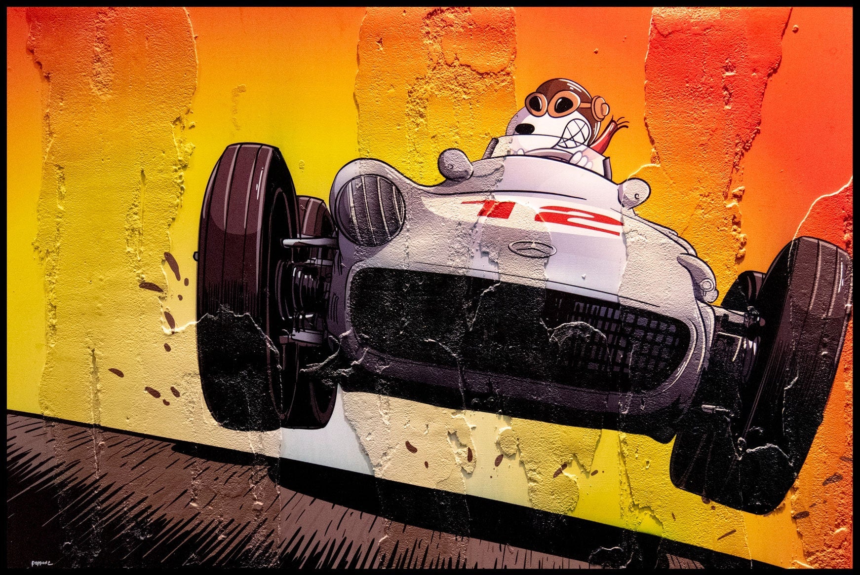 Cemented plaster on canvas mounted on dibond, ink, spray painting and paint marker | Framed in recycled wood American box.