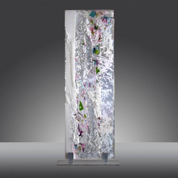 ORIGINAL AND UNIQUE GLASS SCULPTURE ON STAINLESS STEEL BASE