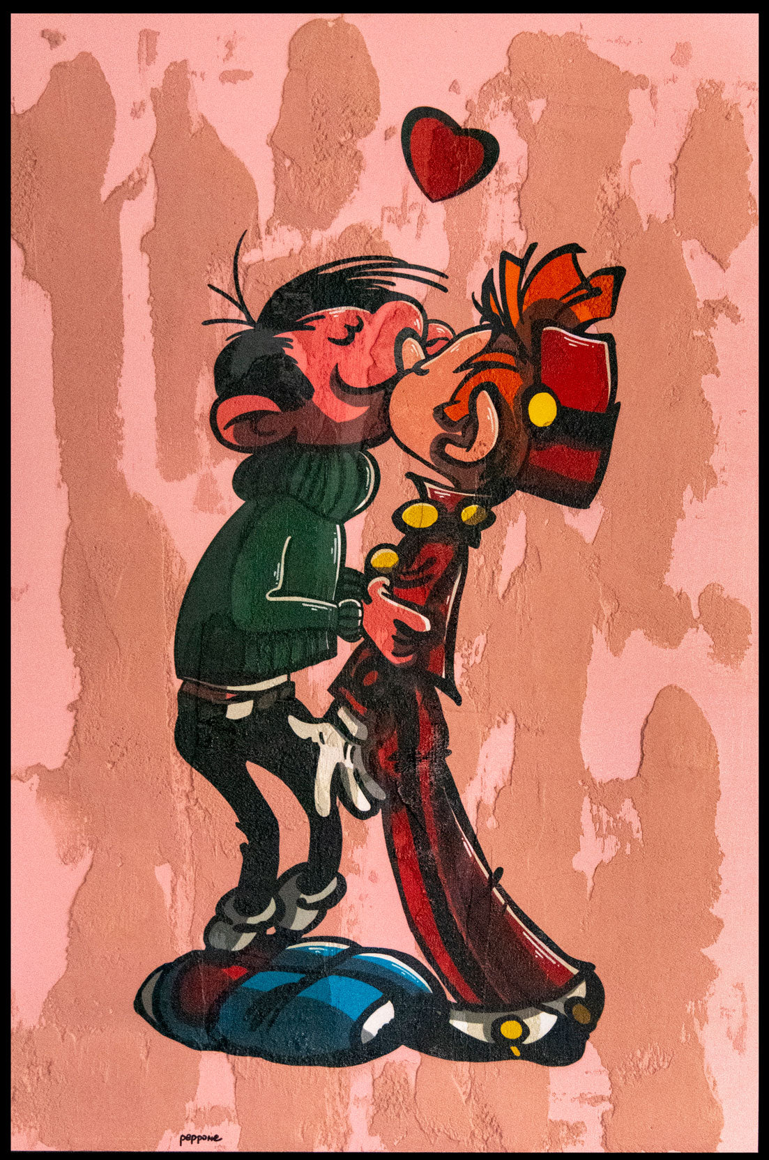 Cemented plaster on canvas mounted on dibond, ink, spray painting and paint marker | Framed in recycled wood American box.
