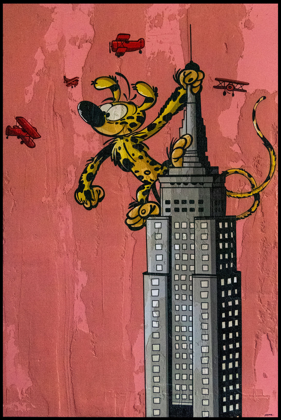 Cemented plaster on canvas mounted on dibond, ink, spray painting and paint marker | Framed in recycled wood American box.
