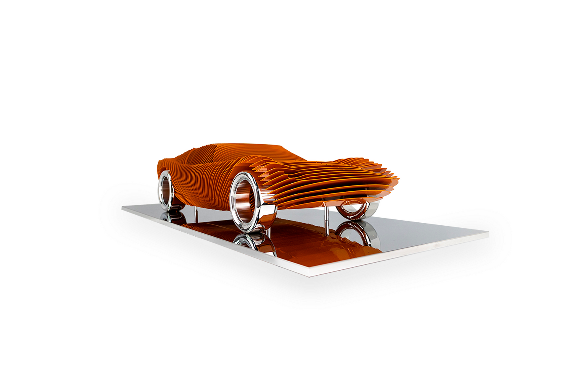 Base in polished stainless steel, wheels in polished solid aluminium | Fuselage in painted steel plates | Edition of 8 + 4 AP