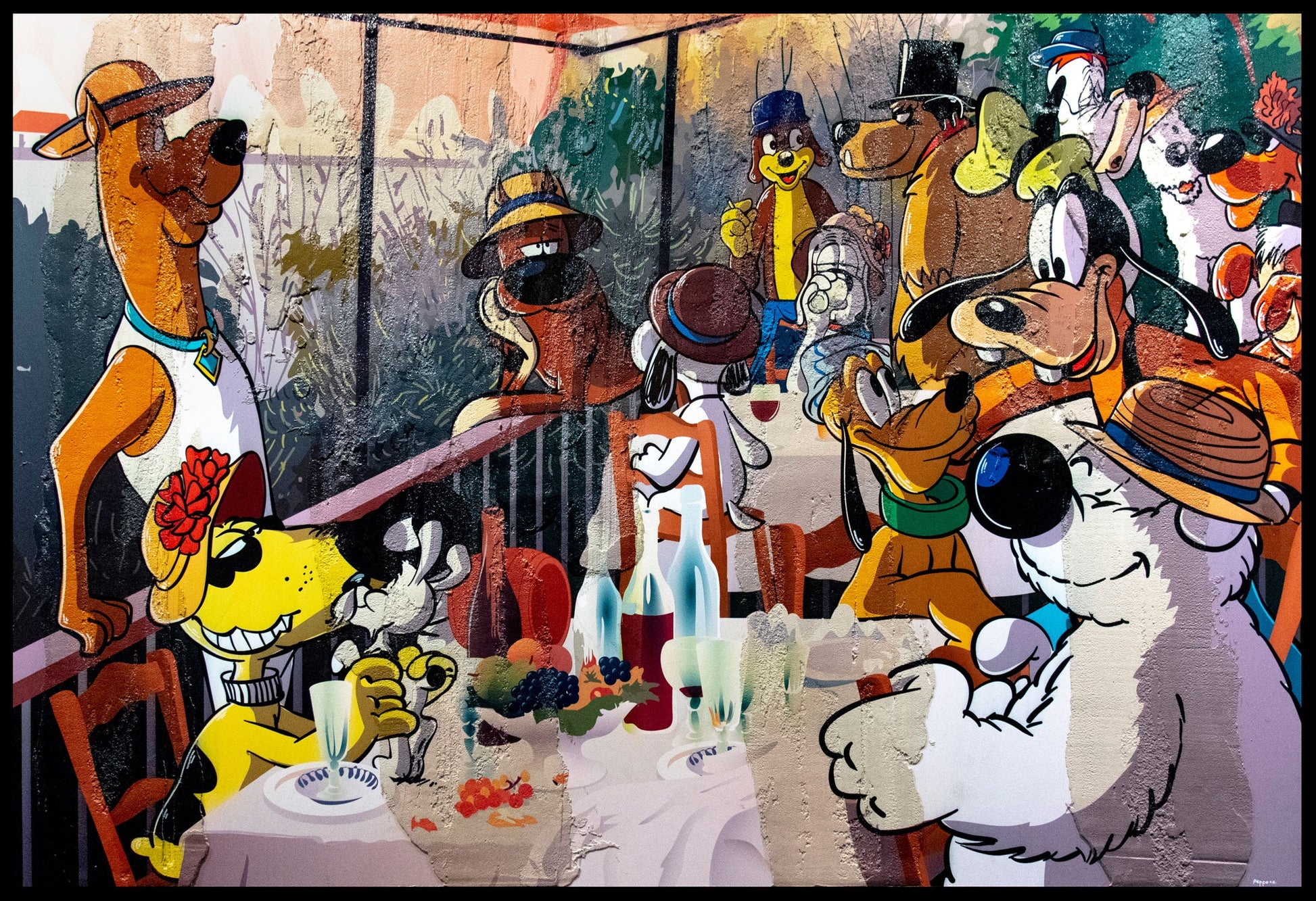 Cemented plaster on canvas mounted on dibond, ink, spray painting and paint marker | Framed in recycled wood American box.