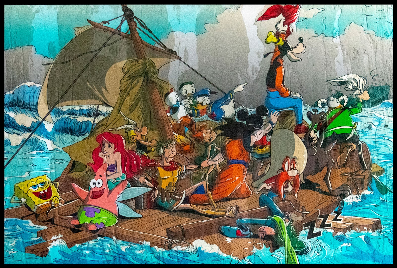 Cemented plaster on canvas mounted on dibond, ink, spray painting and paint marker | Framed in recycled wood American box.