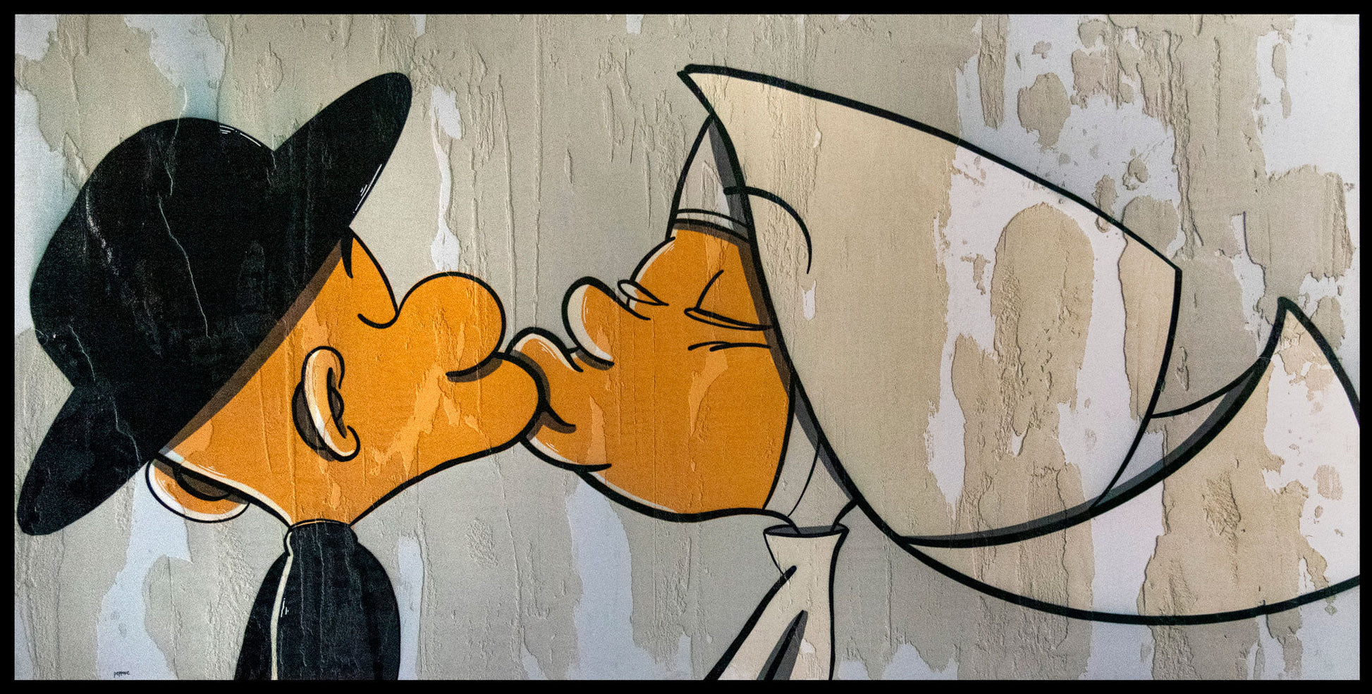 Cemented plaster on canvas mounted on dibond, ink, spray painting and paint marker | Framed in recycled wood American box.