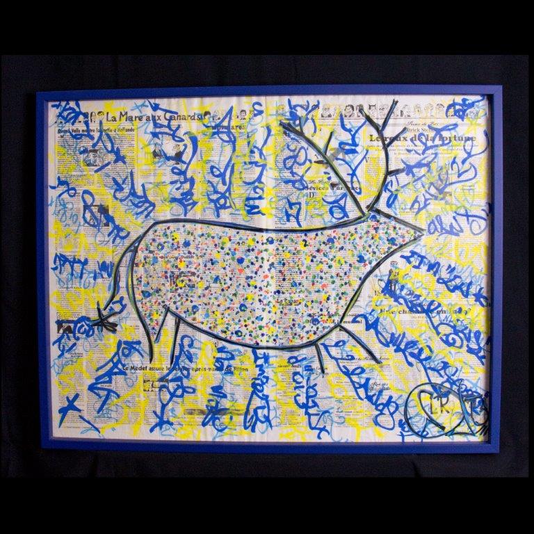 ACRYLIC AND POSCA ON NEWSPAPER | 58 X 74 CM FRAMED