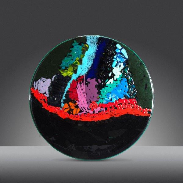 ORIGINAL AND UNIQUE GLASS SCULPTURE ON STAINLESS STEEL BASE